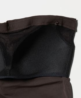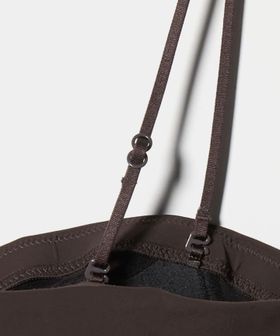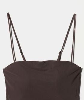 ショルダーストラップ付きのベアトップ。