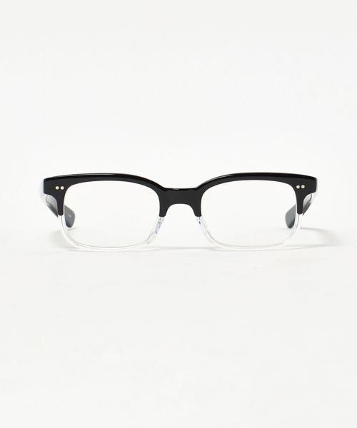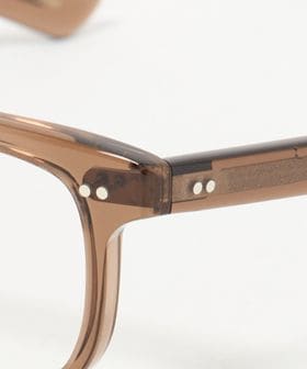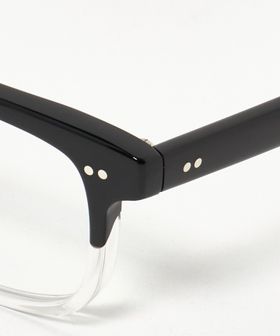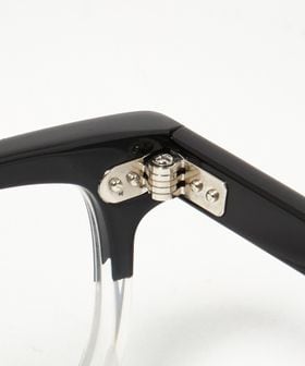 シンプルなスクウェアフロントに太めのテンプルを合わせることでクリエイティブな印象に。