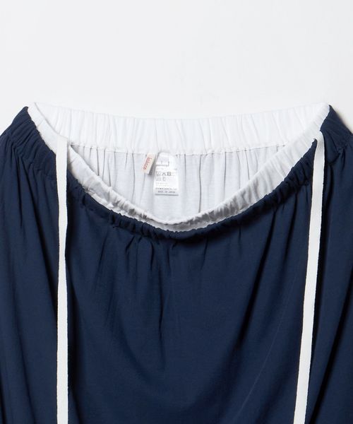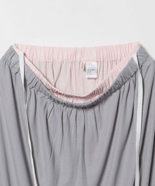 ウエストゴム部分の配色がレイヤード見えし、裾はバルーンシルエットのようなデザイン。