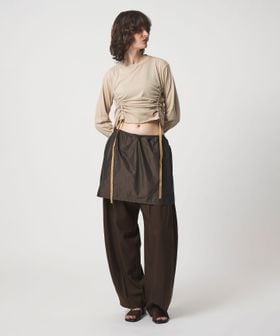 表情のあるエレガントな生地を、あえてラフさを出すためにウエストゴム仕様に。