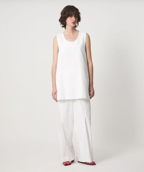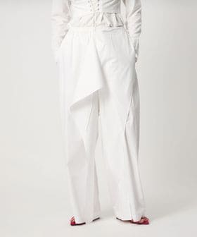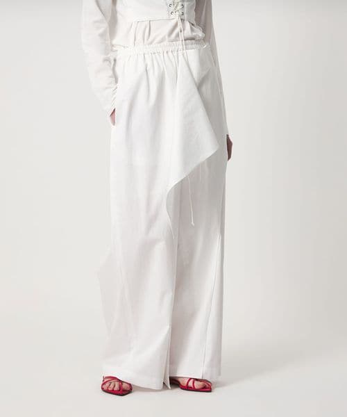 ハンカチーフヘムが付いたようなラッフルディテールをポイントにしたパンツ。