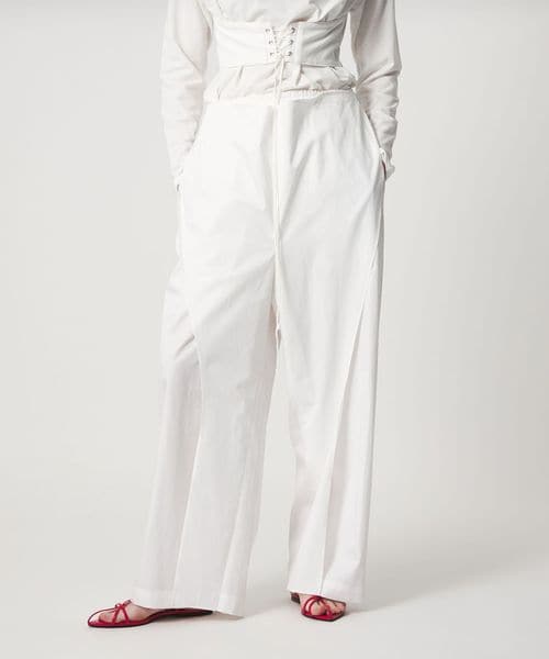 <6(ROKU)>コットン サテン ラッフル イージーパンツ
