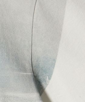 肩先、襟元まで大きくプリントが施されたデザイン。