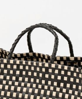 ベトナムの職人による、編み込みの美しさが際立つビッグサイズのバスケットトートバッグ。