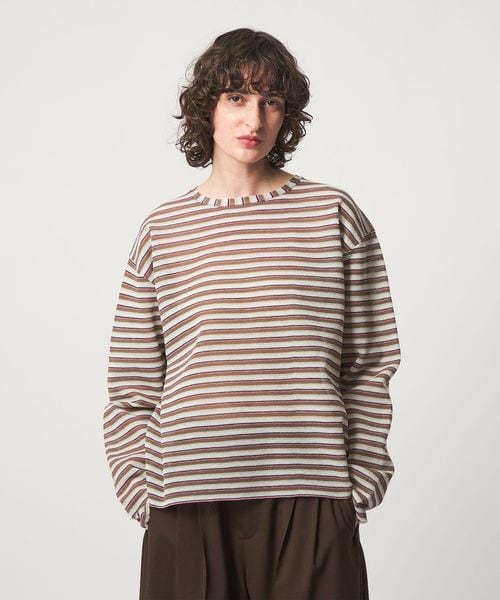 <6(ROKU)>ポリエステル麻 ボーダー ニット