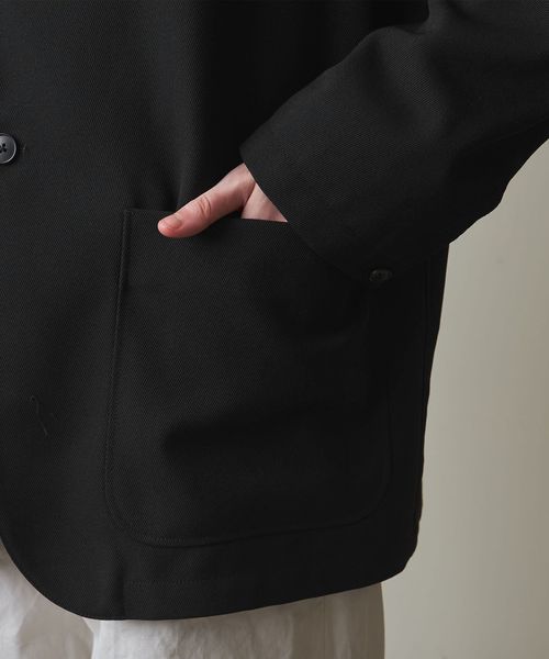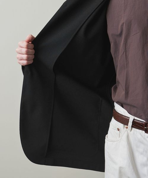 袖のみに裏地が付いた仕様のため、とても軽やかな着心地で肩ひじ張らずにラフに羽織れる一着です。