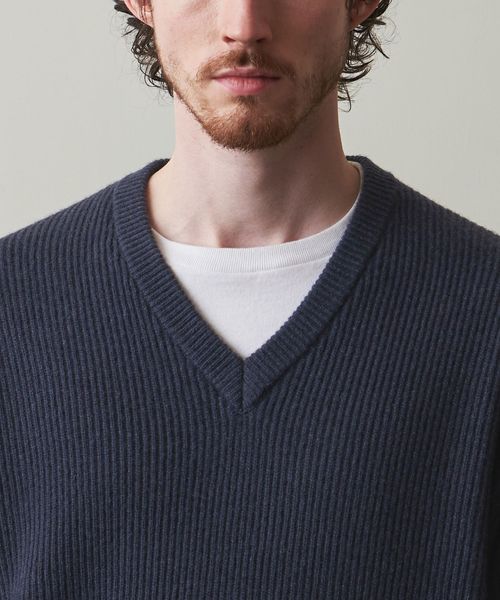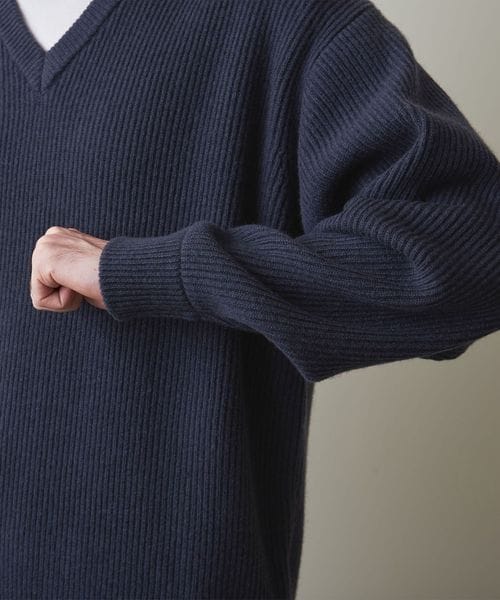 素材の風合いにこだわったクラシックなVネックニット。