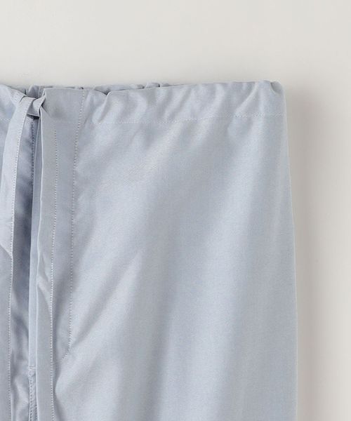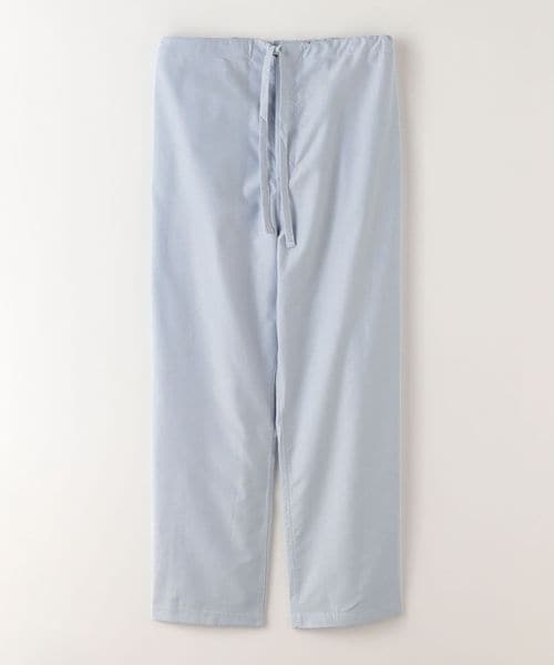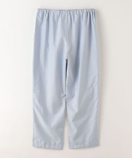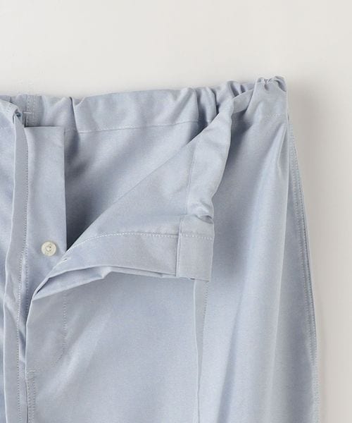 ボトムスのウエストは紐で結ぶ仕様で、フロントが前開きなところもポイント。