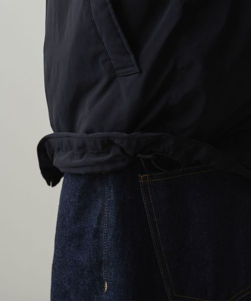 袖口のスナップボタンや裾のドローコードでシルエット調整が可能。