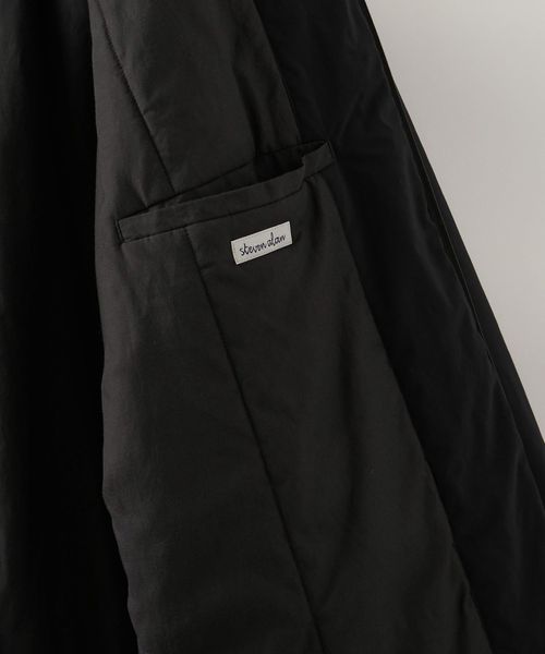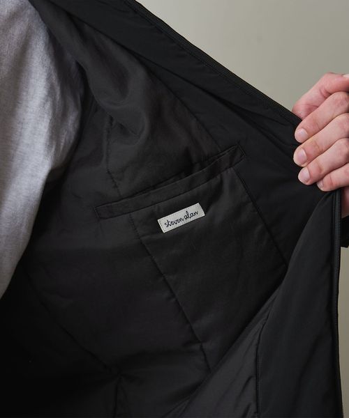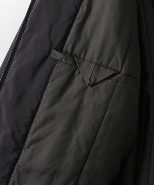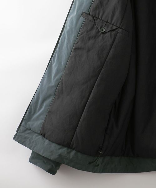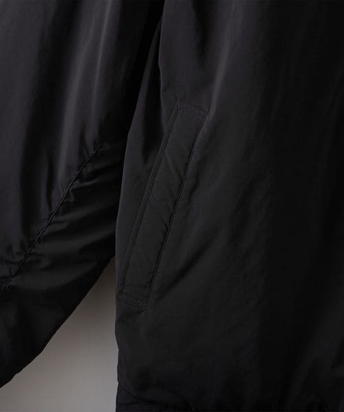 表側はマットな質感と微光沢のある撥水加工を施したポリエステルナイロン生地、裏側は中わたキルト仕様を採用。
