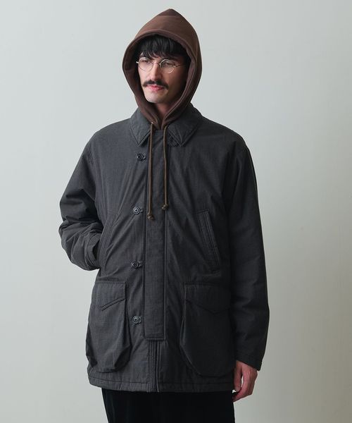 ミリタリーコートをベースにデザインした、ジープコート型の中綿アウター。