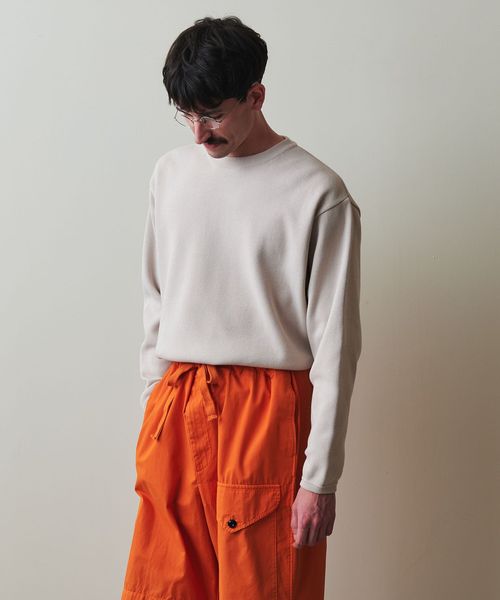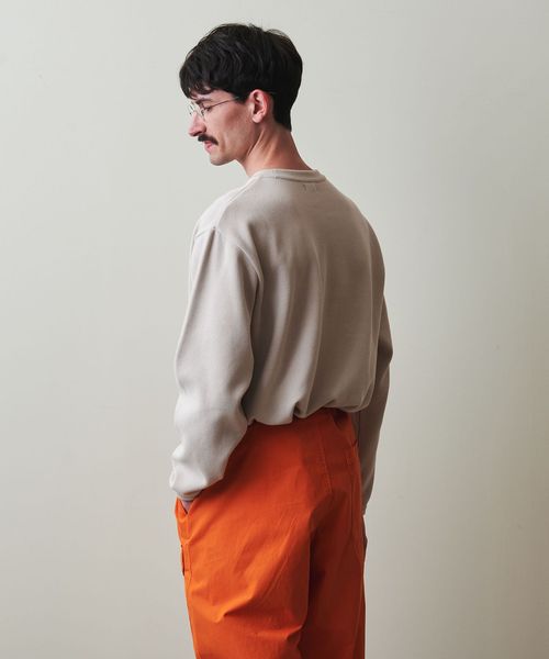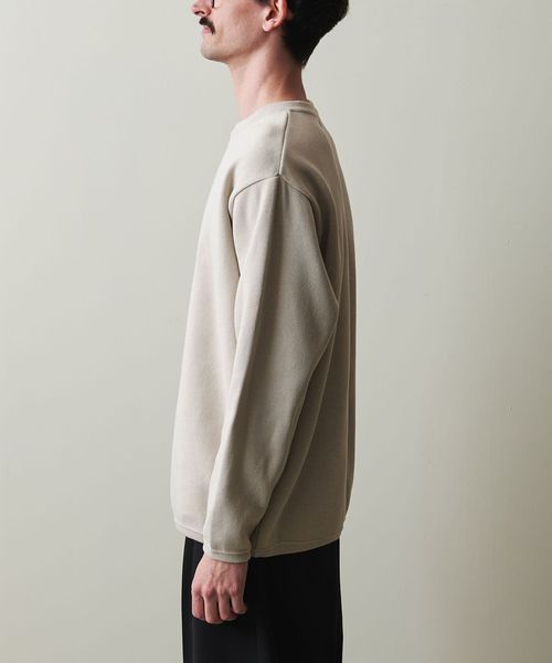 随所にカット縫製を取り入れ、スウェット感覚で着られるよう仕上げつつも、全体を上品な印象に仕上げています。