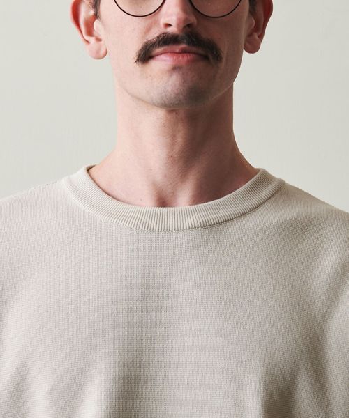 やや高めに設定した鮮度のあるクルーネックデザインが特徴のニット。