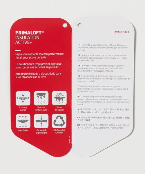 表生地にはPertex(R) Quantum Air、中わたにはPrimaLoft(R) Gold Insulation Active+を採用。