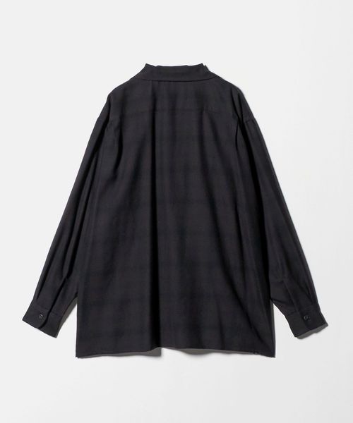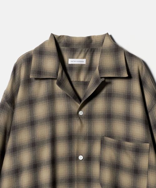 落ち着いた色合いのオンブレーチェックがポイントのオープンカラーシャツ。