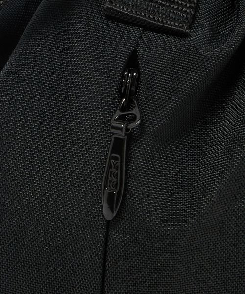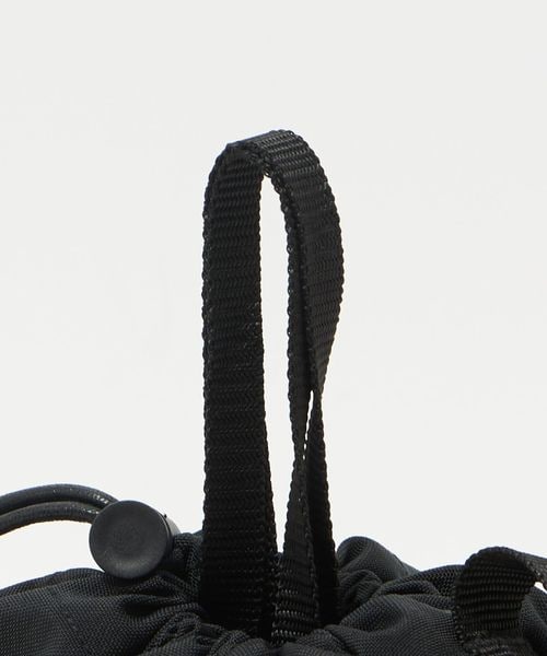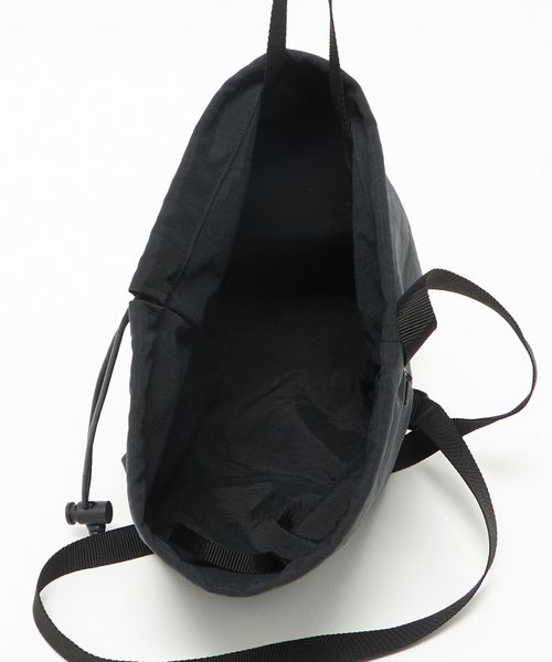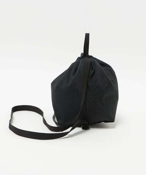 内ポケットと逆側にはファスナー付きのメッシュポケットを備え、サイドのコンシールファスナーにより巾着を絞ったまま荷物が取り出せます。