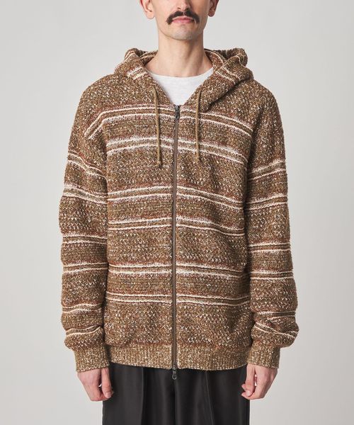 パーカーのリラックス感とニットの上品な雰囲気の両方を兼ね備えているため、カジュアルになりすぎず幅広いスタイルに取り入れられます。