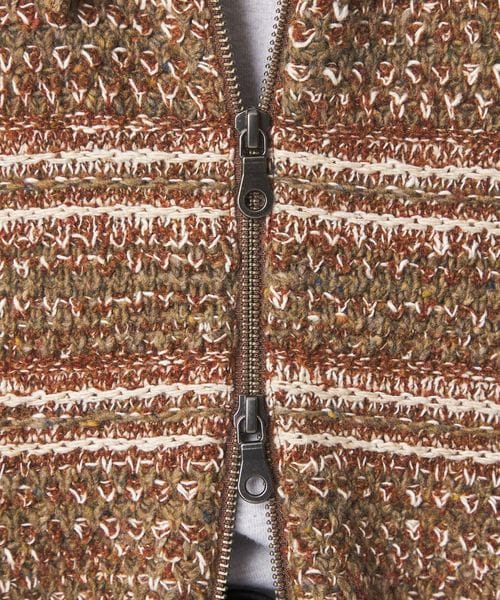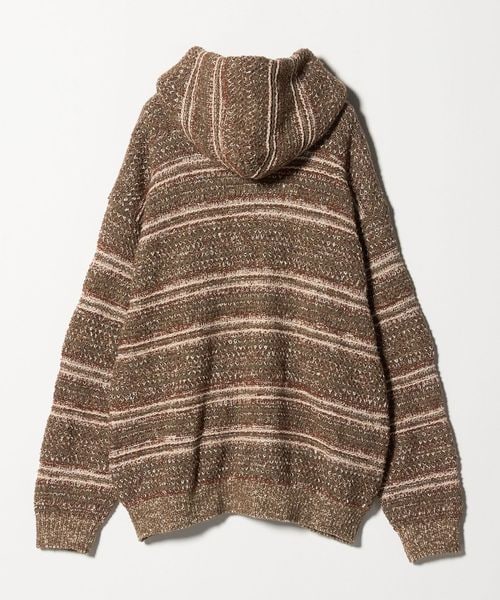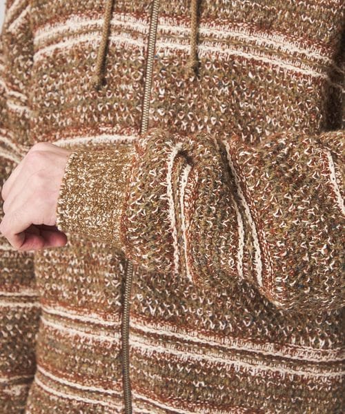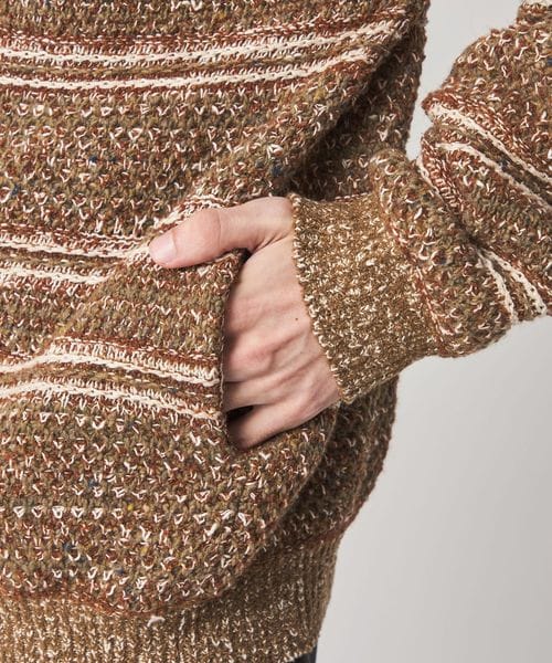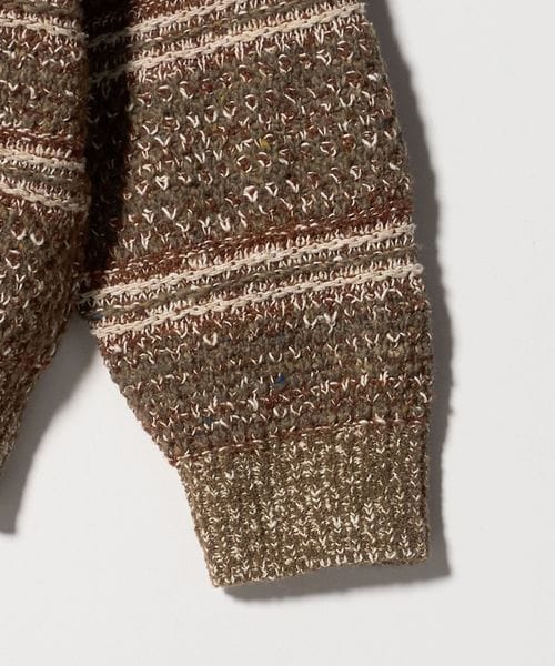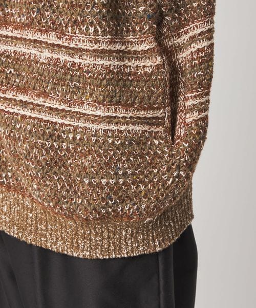 鹿の子と変形ボーダーを組み合わせた、ニットならではの独特な編み柄が魅力です。