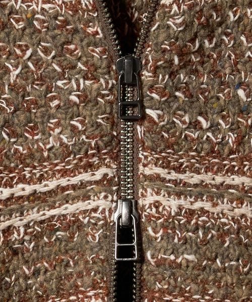 ウールをベースに異なる素材を用いて、奥行きのある表情を表現しています。