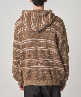 鹿の子と変形ボーダーを組み合わせた、ニットならではの独特な編み柄が魅力です。