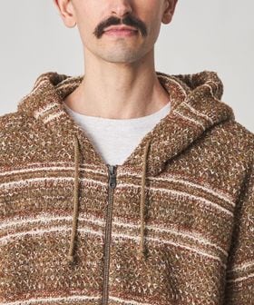 パーカーのリラックス感とニットの上品な雰囲気の両方を兼ね備えているため、カジュアルになりすぎず幅広いスタイルに取り入れられます。