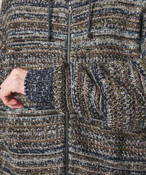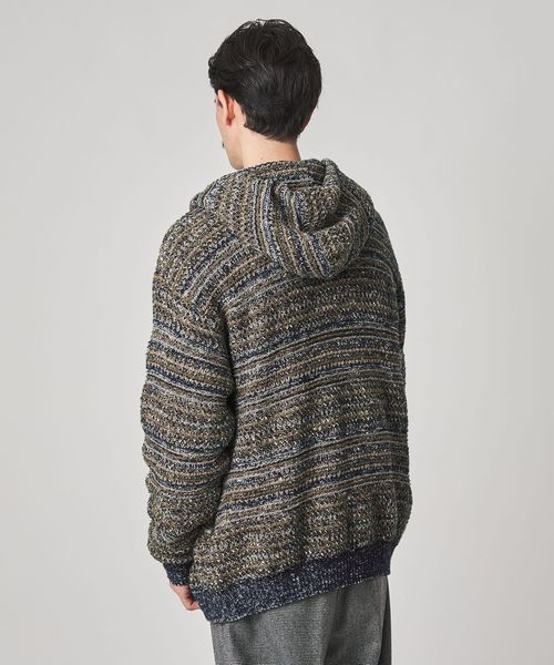パーカーのリラックス感とニットの上品な雰囲気の両方を兼ね備えているため、カジュアルになりすぎず幅広いスタイルに取り入れられます。
