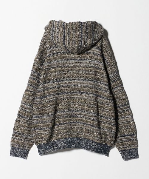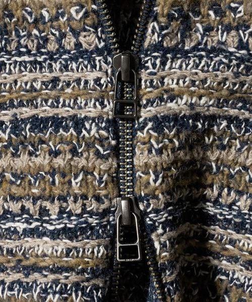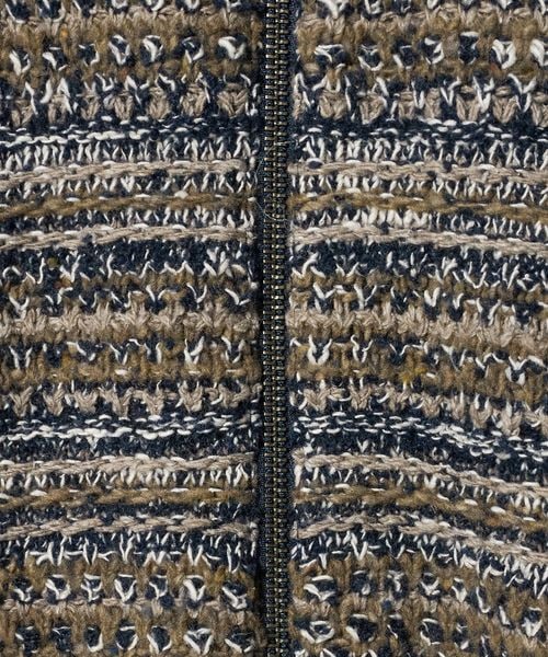 鹿の子と変形ボーダーを組み合わせた、ニットならではの独特な編み柄が魅力です。