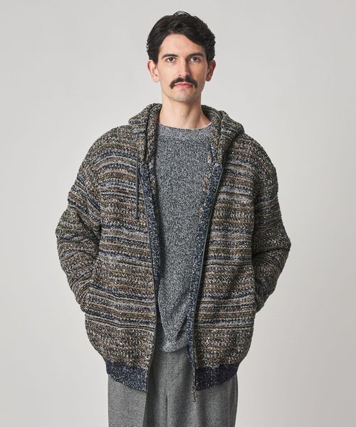 パーカーのリラックス感とニットの上品な雰囲気の両方を兼ね備えているため、カジュアルになりすぎず幅広いスタイルに取り入れられます。