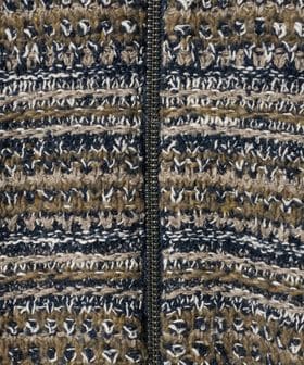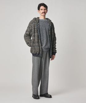 ウールをベースに異なる素材を用いて、奥行きのある表情を表現しています。
