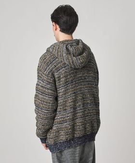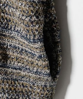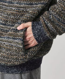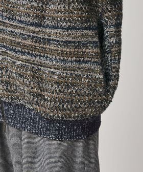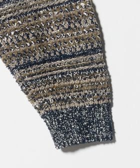 鹿の子と変形ボーダーを組み合わせた、ニットならではの独特な編み柄が魅力です。