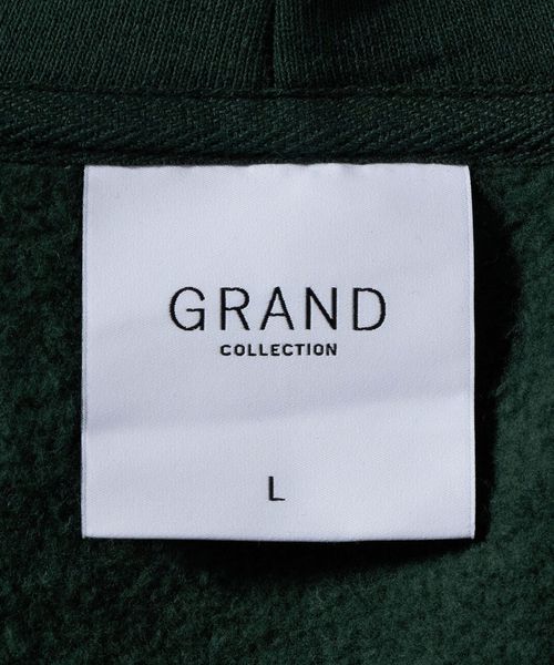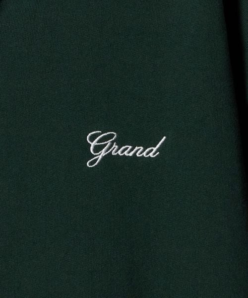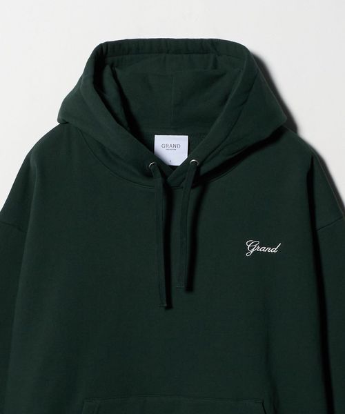 「GRAND」の刺繍ロゴがワンポイントになったフーディー。