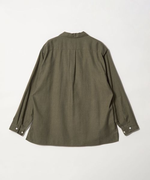 第一ボタンを開けても閉めても着用できるオープンカラーシャツ。