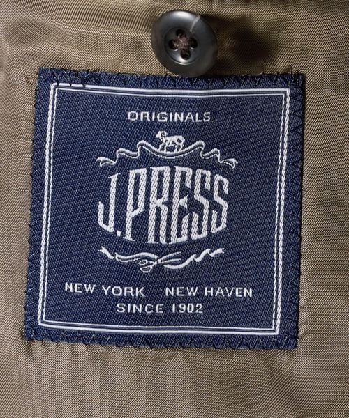 ナチュラルショルダーで自然なフォルムの肩、動きやすいボックスシルエット、赤いパイピングなど<J.PRESS>らしいディテールはそのままに、ラペルをシャープにすることで現代的なムードにアレンジしています。