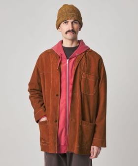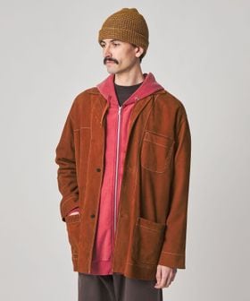 無駄な装飾を省いたミニマルなデザインのカバーオール型ジャケット。