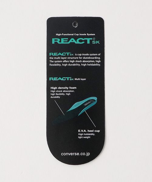 踵を深く包み込む設計によりホールド性を向上させる、スケートボード専用高機能カップインソール「REACT SK」を採用。