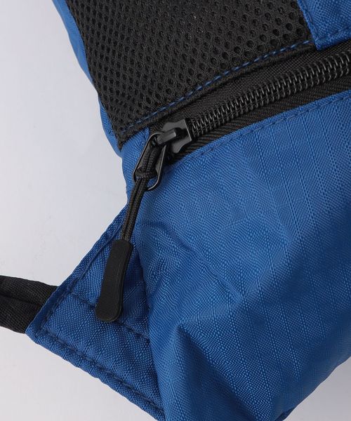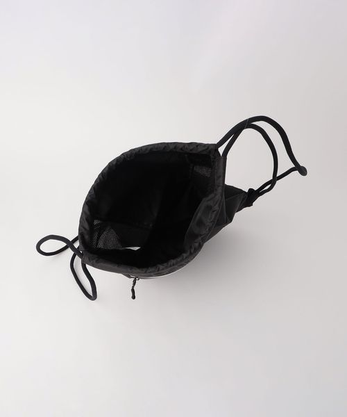 巾着型で、大きく開くメインコンパートメントに小物の収納に適したフロントポケットが付いた、使いやすいデザイン。