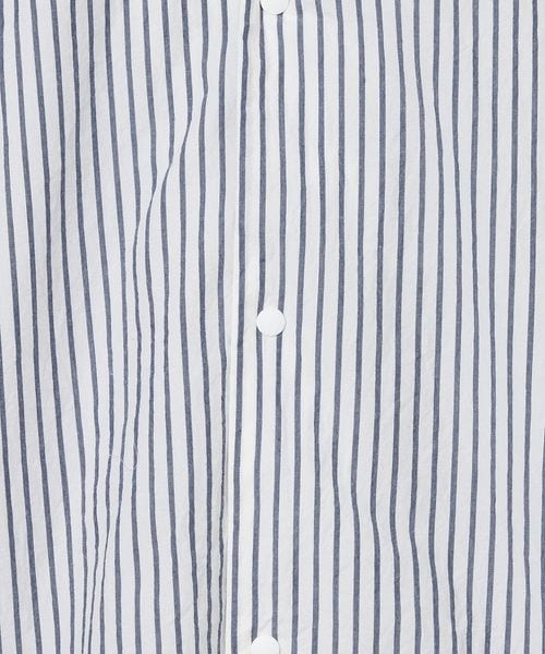 襟を開いて開襟シャツとしても使えるシンプルで、汎用性の高い一着です。