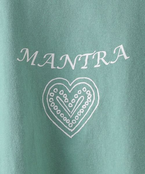 胸元には「MANTRA」のグラフィック、両袖にはウェビングのプリントが施されています。
