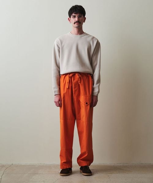 ミリタリーパンツをベースに、モダンなシルエットで再構築されたパンツ。