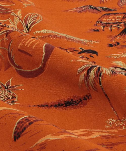 ハワイアンシャツの生地を採用しミニスカーフを作製。