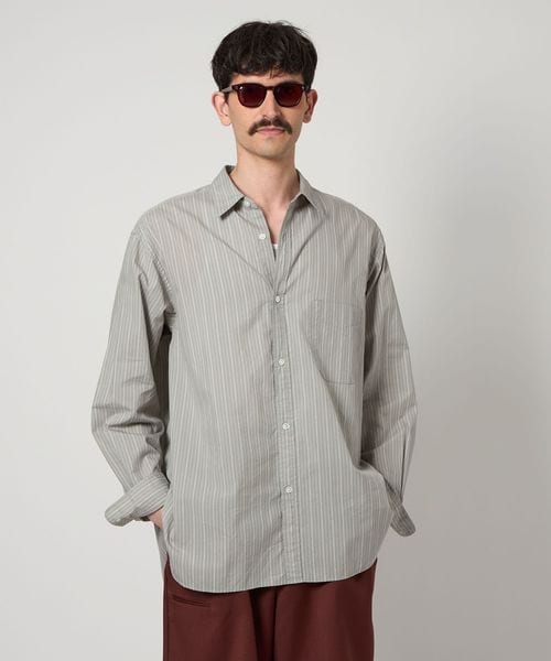 <Steven Alan> C/L/S ストライプ レギュラーカラー シャツ ALINE LOOSE