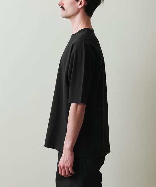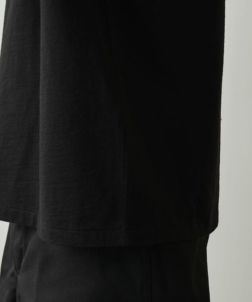 長めの着丈でゆったり感は残しつつ、肩幅や身幅、アームホールのバランスをややすっきりめにデザインしたシルエット。