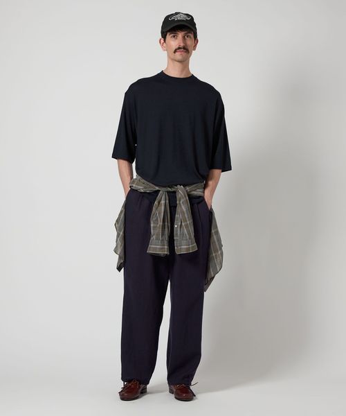 タックが入り腰周りにゆとりのある太めなシルエット。