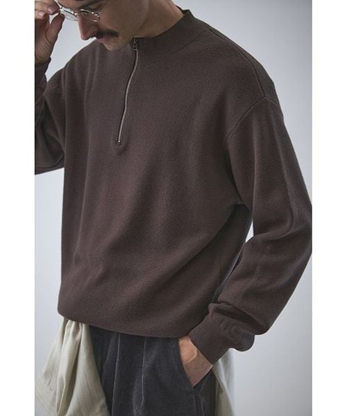素材の質感と着まわしやすいシンプルなデザインが魅力のハーフジップニット。
