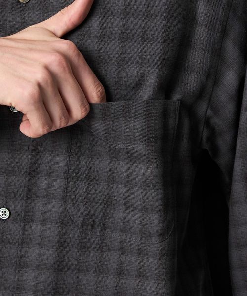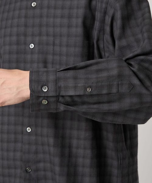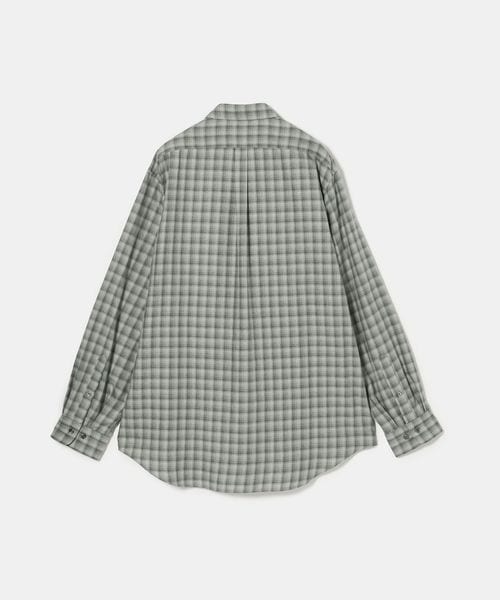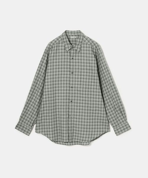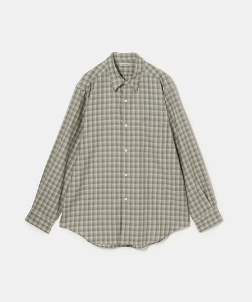 オンブレ―チェックがポイントのレギュラーカラーシャツ。