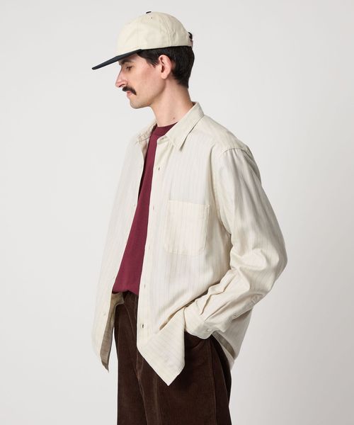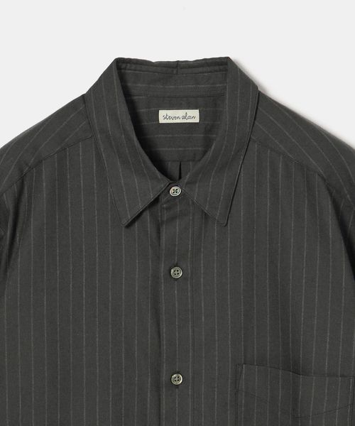 <Steven Alan> ネル ストライプ レギュラーカラー シャツ NARROW