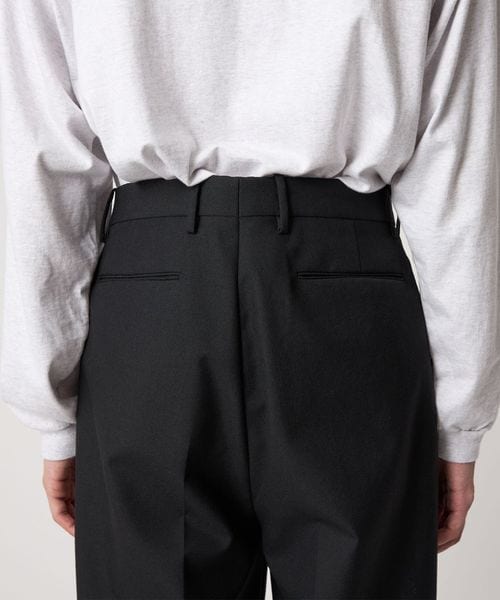 股上はゆったりと深めに設定し、緩やかにテーパードしたワイドなシルエット。