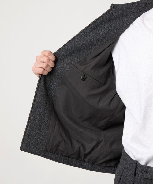 シンプルながら、素材の風合いなどディテールにこだわったショートジャケット。