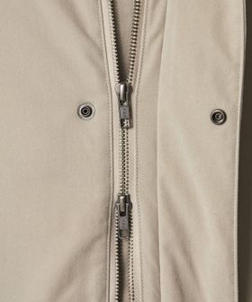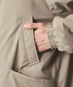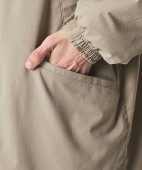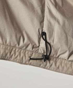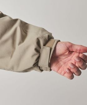 寒いときには楽に手を入れられるハンドウォーマーポケットや袖口にはアジャスタータブが付き、裾のスピンドルを調整することで、風の侵入を軽減するだけでなく、シルエットのアレンジも楽しめます。