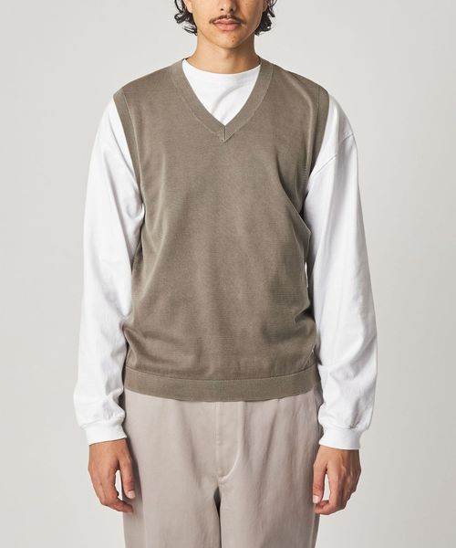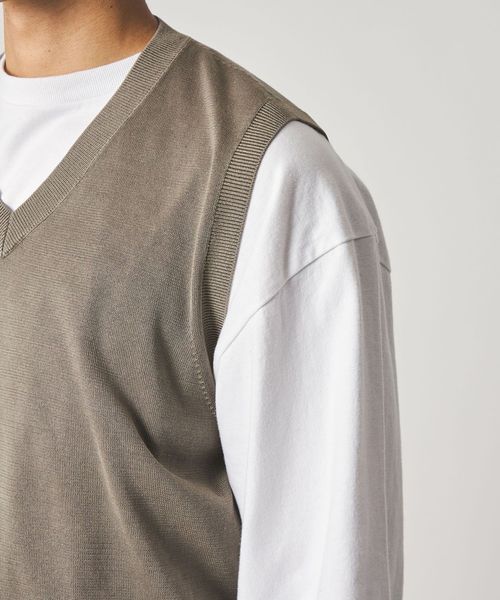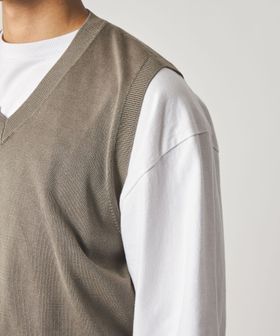 ざっくりと開いた首元がエフォートレスなムードを演出するVネックニットベスト。